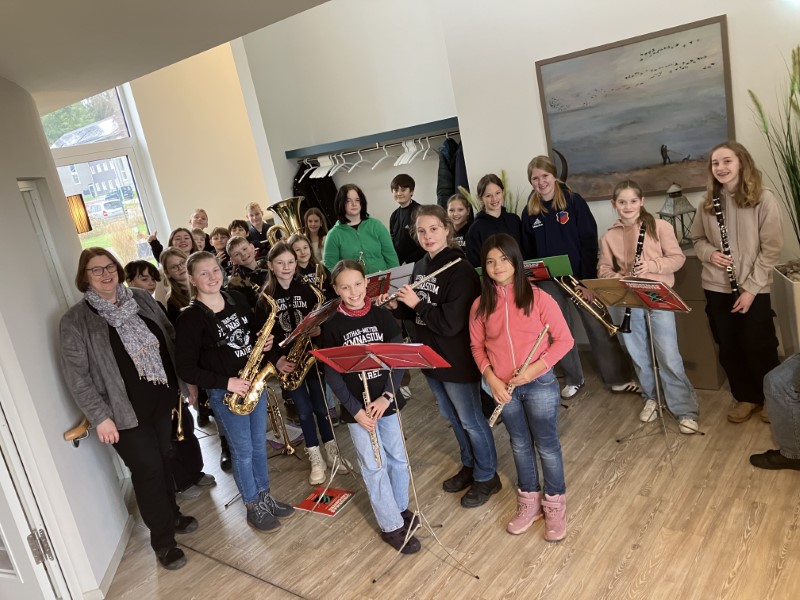 (Sh) An zwei Tagen im Dezember haben die Bläserkassen 6b und 7b im Rahmen des "lebendigen Adventskalenders" im Hospiz am Wattenmeer für weihnachtliche Stimmung gesorgt. Neben Weihnachtsliedern gab es als Zugabe aber auch aktuelle Popmusik zu hören, was den Gästen des Hospizes gut gefallen hat. Wir kommen gerne wieder!