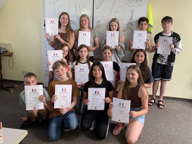 (We) Zum fünften Mal in Folge absolvierten die diesjährigen Sechstklässler des Lothar-Meyer-Gymnasiums erfolgreich die Tour de Français auf dem Niveau A1. Bei dieser Tour durch das Französische durchliefen sie vier verschiedene Kompetenzbereiche: Lesen, Schreiben, Hören und Sprechen. Die jeweiligen Stationen wurden von den Französischschülerinnen und -schülern der Klassen 10, 11 und 12 betreut und ausgewertet. Die Schüler*innen waren sehr ambitioniert dabei und freuen sich sehr ihr Zertifikat in der Hand halten zu können. Toll, was unsere Sechstklässler dieses Jahr gelernt haben!